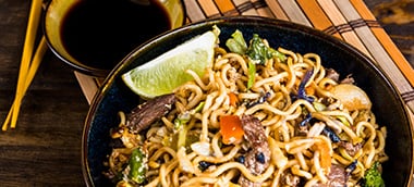Vermicelli noodles, egg, onion, ginger, scallion, carrot, mushroom and bean sprouts