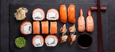 10 Pieces of chef's choice nigiri & choice of salmon roll or tuna roll