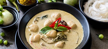 Sweet spice green curry with eggplant & bamboo shoots bell pepper & basil