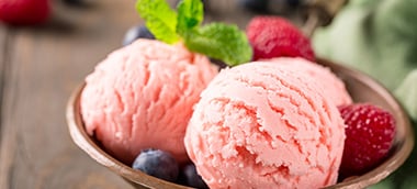 Vanilla ice cream, coconut flakes sweet strawberries and caramel walnuts